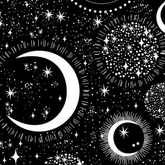 Stars and moons collide to create this fabulous black and white Celestial Hot Head. Wear your favourite side facing out or alternate them depending on your mood.