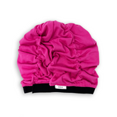 The Scrunch It Shirt features the same amazing, patented, scrunching cap design but made from medium weight t-shirt material. Made from a natural cotton and poly blend, the Scrunch It Shirt is soft, lightweight, breathable, easy to wear, and still gives you beautiful frizz free curls. No longer do you need to struggle to wrap an old t-shirt around your head to plop your curls. In two classic colors, Black and Pink, you'll be stylish while you plop!