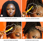 How to Use: Apply a small amount to edges or baby hairs, smooth with fingers, comb, or edge brush, and style as desired. Reapply lightly for touch-ups.