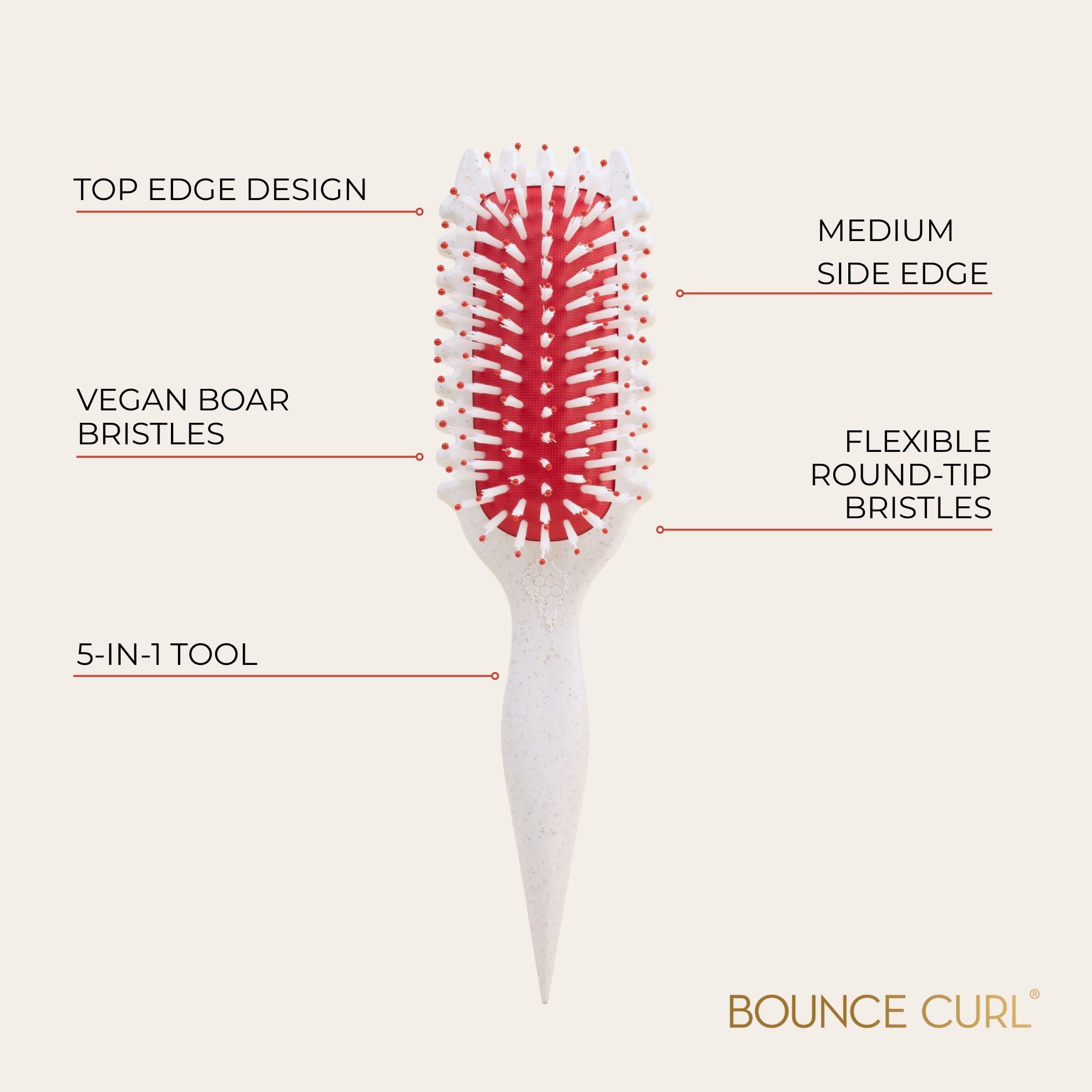 • Bounce Curl really cares about this Earth (see recycling efforts). If we find an option to create something without plastic that actually performs well, Bounce Curl will offer those products instead. Our brushes are biodegradable. Our vegan hairbrushes and combs are animal-free; they do not contain animal ingredients or byproducts and are cruelty-free (no animal testing!).