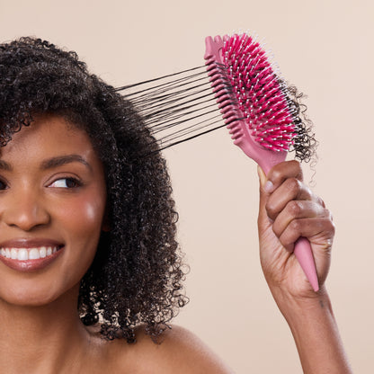 Dense vegan boar bristles: provide more separation and smoothing for extra volume and may reduce frizz.