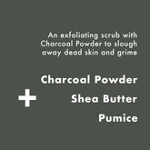 Your go-to charcoal scrub for cleaner, brighter skin. Finely ground Charcoal exfoliates and lifts impurities, while Shea Butter and Panthenol nourish and hydrate for a fresh, smooth complexion that feels balanced.