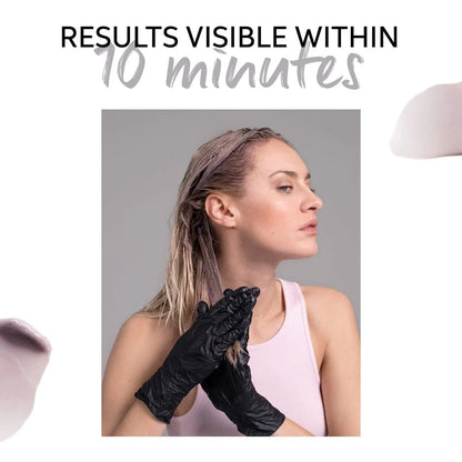 Shampoo and towel-dry hair. Apply generously section by section and comb through for even distribution. Leave on for up to 10 minutes, depending on desired intensity. Rinse thoroughly. We recommend wearing gloves during application.